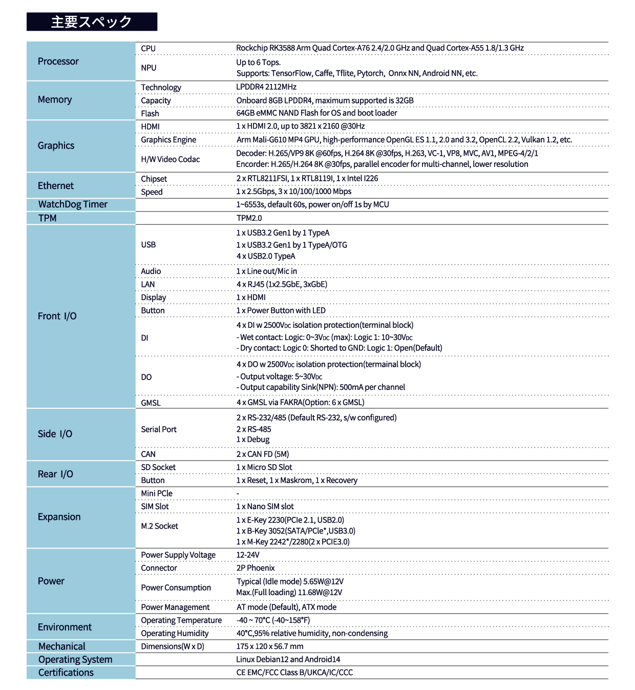 コストパフォーマンスに優れた Rockchip RK3588 を搭載。